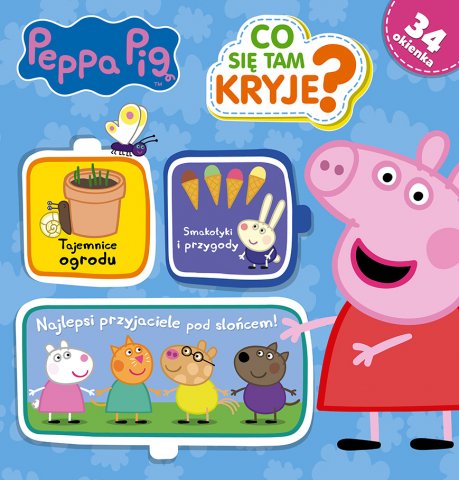 Nie lada gratka dla najmłodszych fanów rezolutnej Peppy. W środku znajduje się 34 ruchomych okienek z mnóstwem zadań i zabaw, które przeniosą dziecko w niezapomniany świat ulubionych bohaterów popularnej kreskówki. Dzięki książce maluchy rozwiną spostrzegawczość i koordynacje ruchową, a także naucza się rozpoznawać kolory czy liczyć do 10.